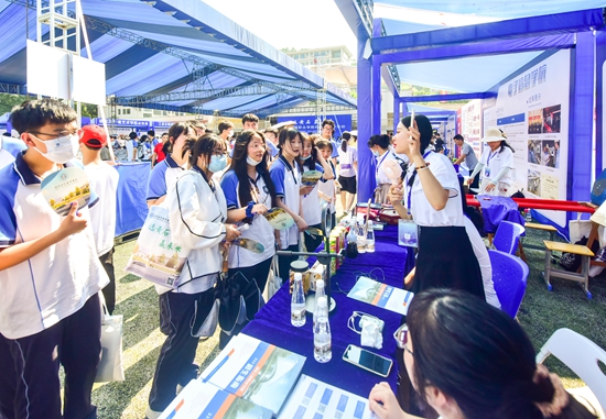 启动式后,学生在志愿者的带领下,开启了精彩的体验活动。活动现场,我校八大二级学院都拿出了自家的“看家绝活”,讲专业优势、展办学成果,吸引了众多学生现场互动体验。现场的“再见,高中”和“下一站,大学”打卡区,吸引了同学们争相打卡。为了让学生有更好的体验,学校为学生们准备了定制礼品、消暑冰棒、牛奶面包以及电影票等贴心的大礼包。